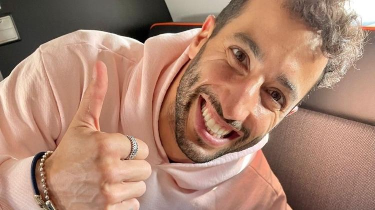Daniel Ricciardo muestra los brigadistas que recibió de Mariana Becker