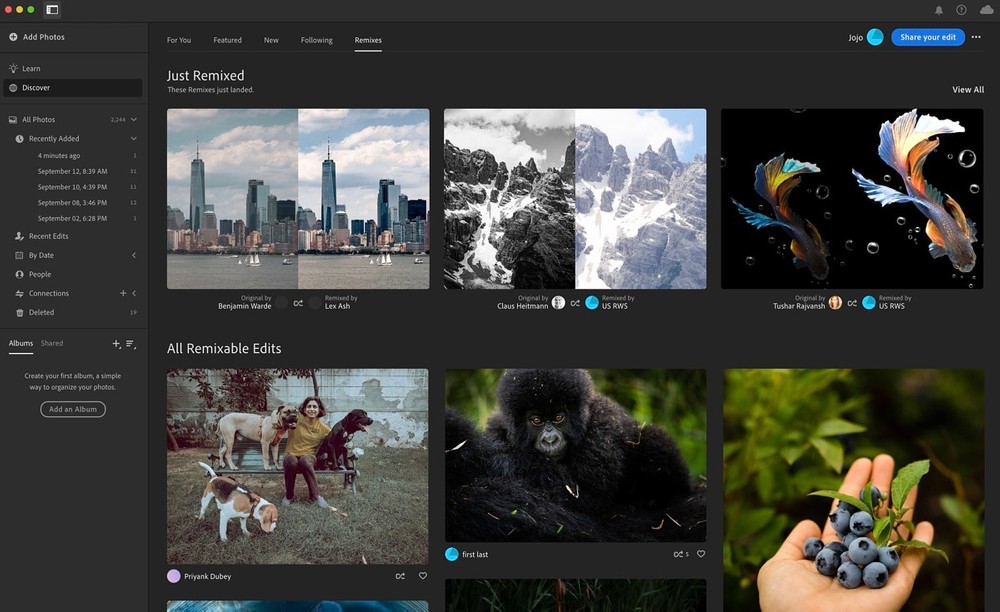 También hay nuevas cuadrículas como la proporción áurea, la espiral áurea o la regla de los tercios para facilitar la alineación de los objetos. Con Community Remix, siempre será posible compartir cambios con otros y encontrar inspiraciones compartidas por otros usuarios.