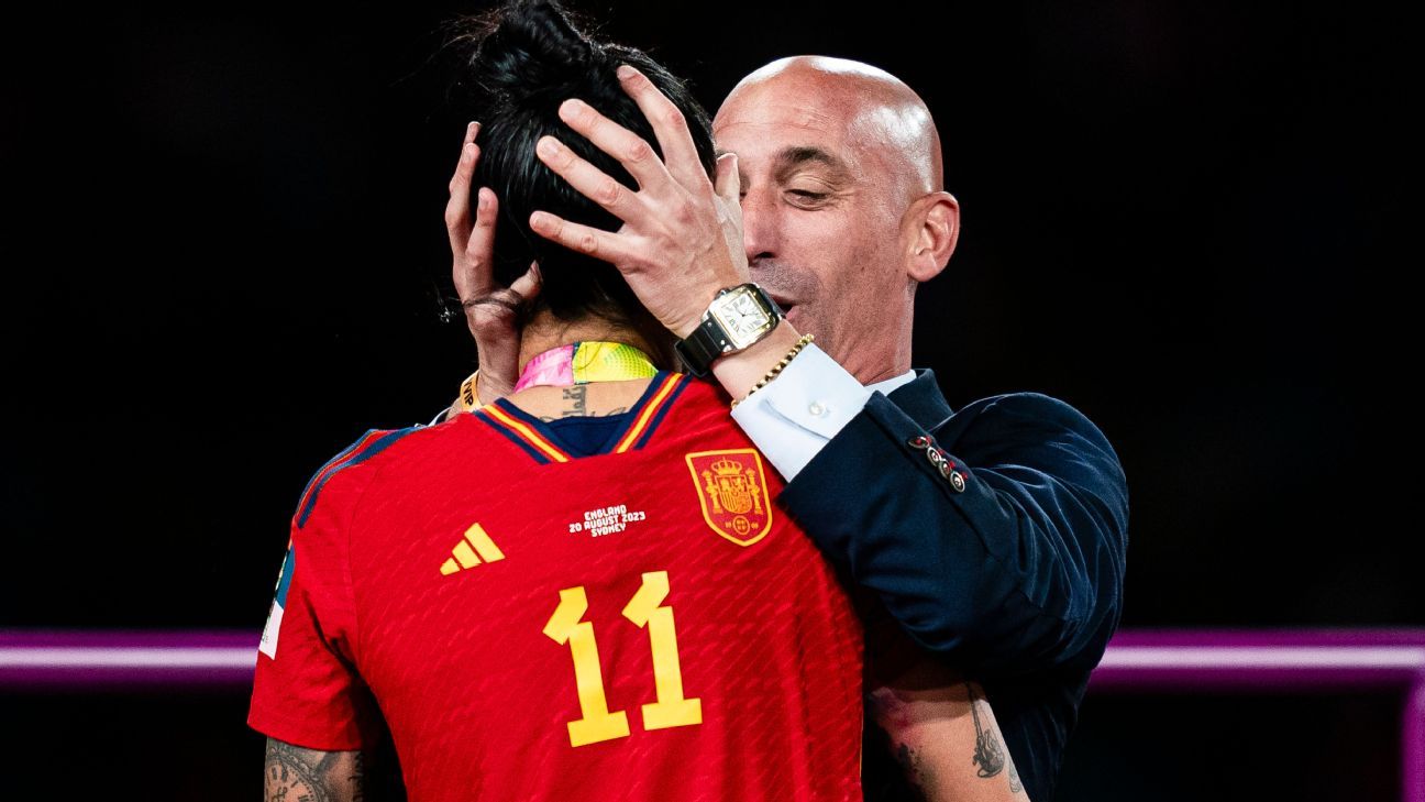 Jenni Hermosoestrella de la selección española, presentó denuncia oficial contra Luis Rubialespresidente de la Federación Española de Fútbol, ​​por Beso forzado durante la celebración del título de la Copa Mundial Femenina de su país.