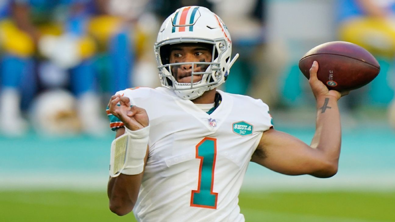 los delfines Tienen marca de 6-3 y tienen una racha ganadora de cinco juegos, acumulando su mejor récord de nueve juegos desde 2001. El domingo fue un día eficiente y relativamente libre de errores para Tagovailoa, que superó al recluta del Cargadores, Justin Herbert, obteniendo el primer triunfo en batalla mano a mano.