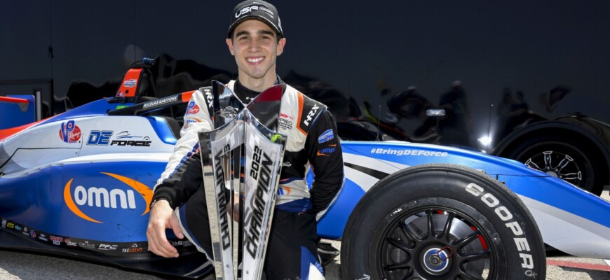 El brasileño Nic Giaffone ganó este domingo (27) el título de la temporada 2023 USF Juniors, la categoría de entrada del Road to Indy, que busca formar pilotos para las carreras de IndyCar. Este domingo, el piloto de DEForce Racing solo necesitó largar una de las dos carreras del día en el Circuito de las Américas en Austin, en la que fue la segunda de tres carreras del fin de semana.